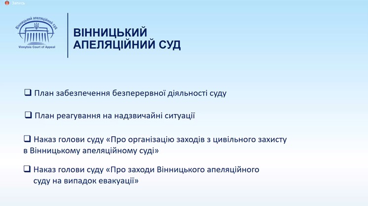 Представники судів розповіли про життя в окупації, як був організований процес відновлення роботи після деокупації. Представники тих судів, що не були в окупації поділились своїми практичними порадами з підготовки до роботи суду в умовах війни.