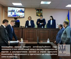 Апеляційна палата Вищого антикорупційного суду залишила в силі запобіжний захід у вигляді тримання під вартою з альтернативою застави у справі одеського бізнесмена, підозрюваного у причетності до корупційних схем на митниці