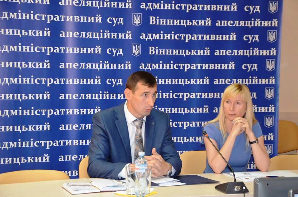 Перед початком Форуму з вітальним словом виступили заступник начальника Територіального управління Державної судової адміністрації в Вінницькій області Олег Кислиця та заступник голови Вінницького апеляційного адміністративного суду Жанна Мельник-Томенко.