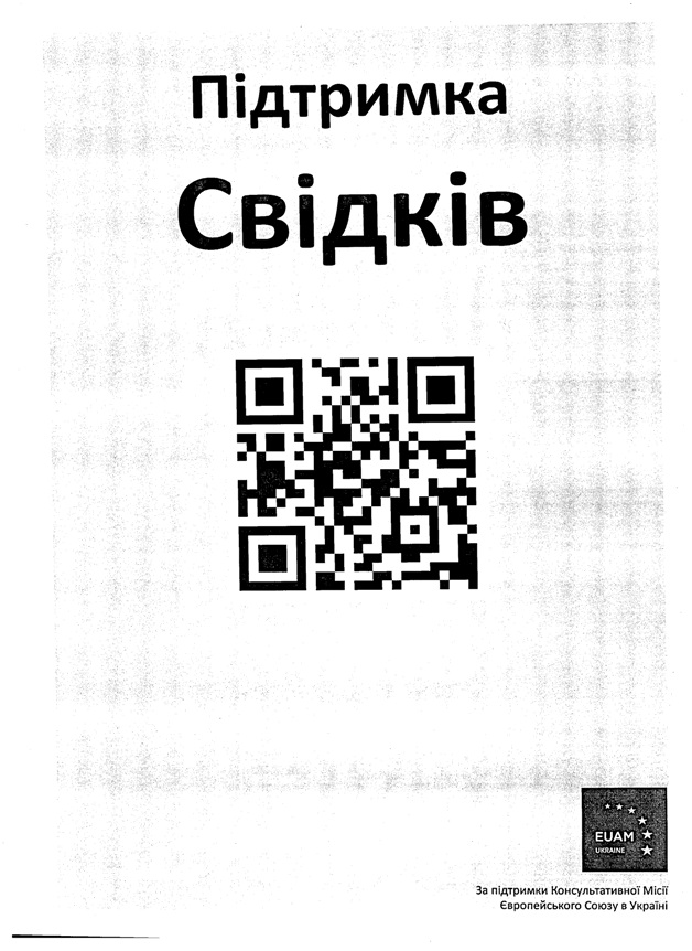 Веб-сайт «Підтримкав свідків в Україна», який можна знайти за адресою:www.prosvitok.info, включає важливу інформацію про права та обов’язки свідків, онлайн-службу підтримки свідків, зображення віртуальної зали судового засідання. Для спрощення доступу до вказаного онлайн-ресурсу створено QR-код.