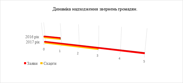 Усі звернення громадян, які були зареєстровані у першому півріччі 2017 року були розглянуті з дотриманням вимог, передбачених ст. 20 Закону України «Про звернення громадян» у термін, який не перевищував 15 діб від дня їх отримання.