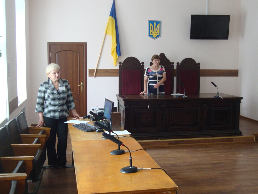 Старший судовий розпорядник Кобернюк Олександр Георгійович провів інструктаж із правил поведінки відвідувачів у приміщенні Вінницького районного суду і гостей запросили пройти до зали судових засідань №3 на першому поверсі, де перед відвідувачами виступили в.о голови Вінницького районного суду Гриценко Ірина Григорівна, та керівник апарату Слободянюк Світлана Степанівна.