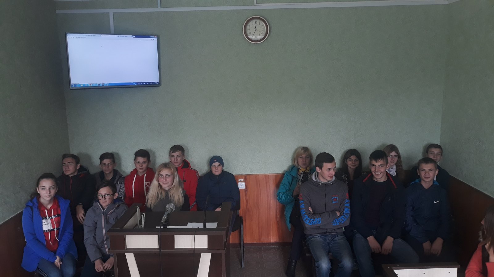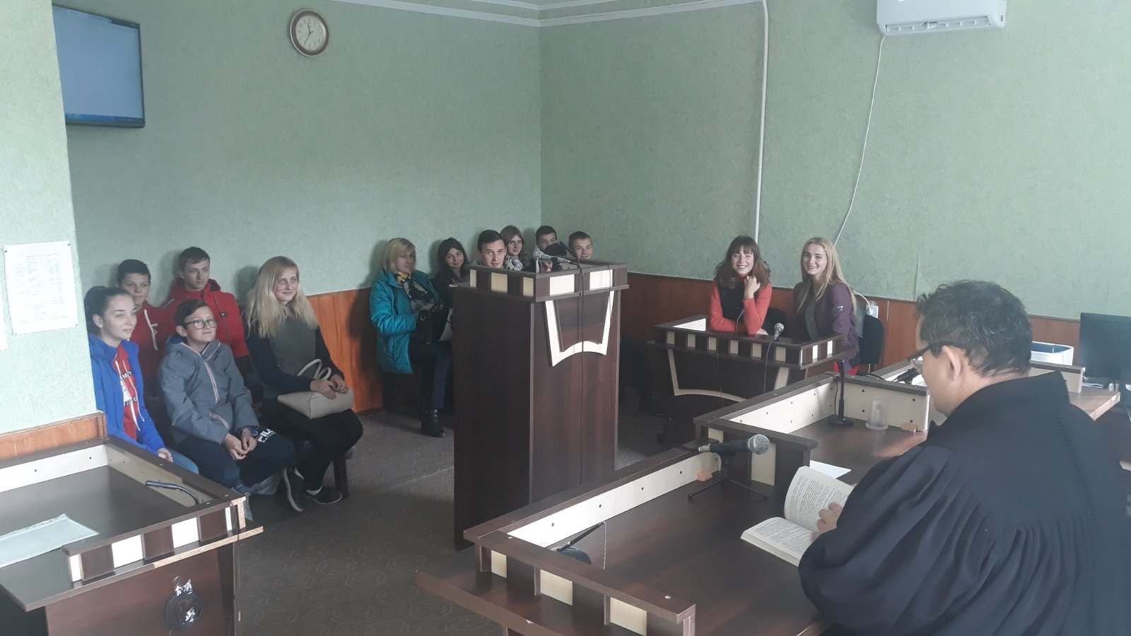 У залі судового засідання в.о. голови суду Желіховський Віктор Миколайович розповів про розміщення сторін судового процесу, як поводити себе під час слухання справи, під час перебування в суді, які існують негативні наслідки порушення правил поведінки в суді, а також повідомив учням вік адміністративної та кримінальної відповідальності та відповідальність за булінг. Наголосив на дотриманні ПДР, та відповідальності за прогули занять у навчальних закладах. Учні охоче ставили запитання на які суддя відповідав.