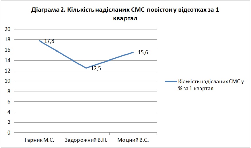 Таким чином, дану послугу найактивніше використовує склад суду судді Гарник М.С., а найменш активно – склад суду судді Задорожного В.П. При цьому, вважаю за необхідне, звернути увагу всіх відповідальних працівників апарату суду на більш широке застосування викликів до суду за допомогою СМС-повісток, з метою більш оперативного розгляду судових справ та економії бюджетних коштів.