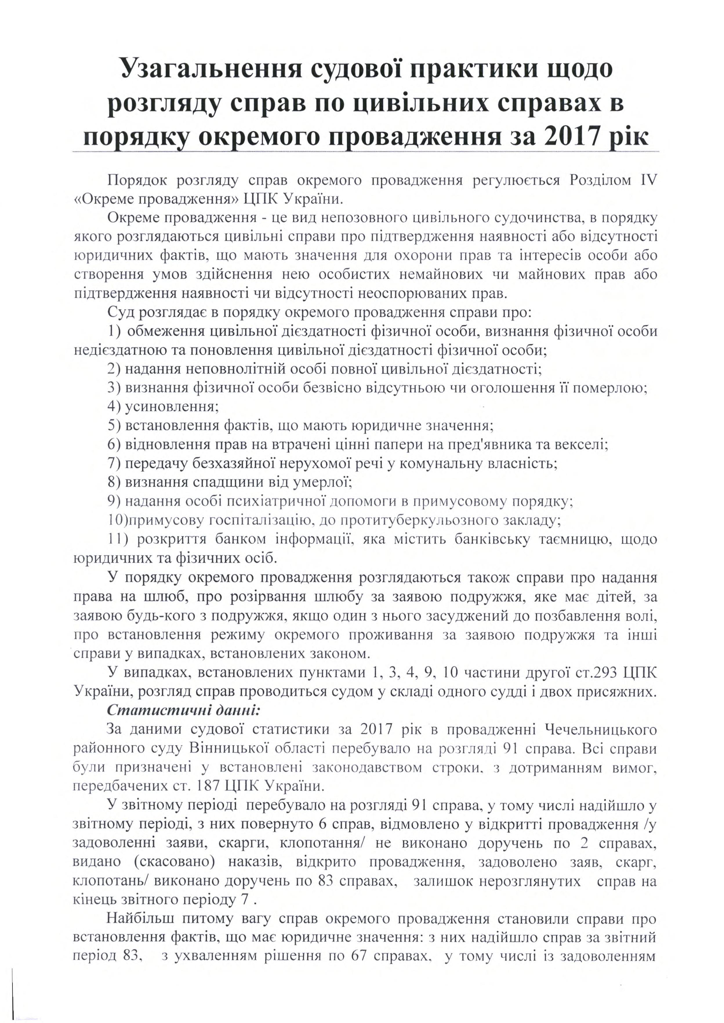 Узагальнення судової практики щодо розгляду справ по цивільних справ в порядку окремого провадження за 2017 рік