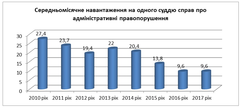 Показники навантаження при розгляді справ про адміністративні правопорушення за останні роки є загалом стабільними і суттєво не змінювались.