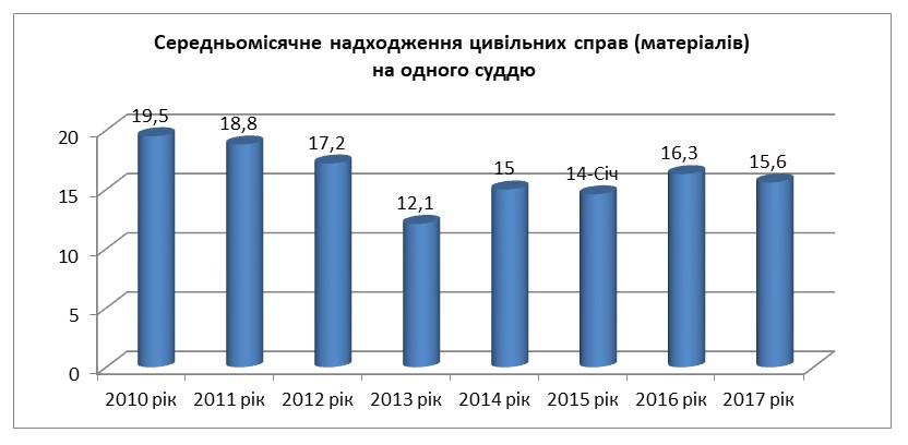 Тенденція надходження цивільних справ та матеріалів загалом є сталою, хоча до 2014 року можна було спостерігати зменшення кількості надходження цивільних справ та матеріалів.