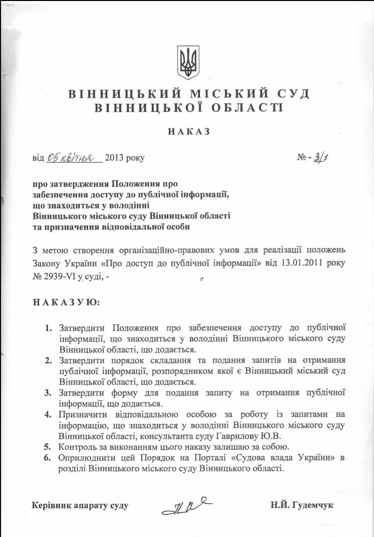до Положення про забезпечення доступу до публічної інформації у Вінницькому міському суді Вінницької області