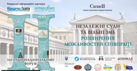Форум організовано за підтримки: Українсько-канадського Проекту підтримки судової реформи в Україні, Верховного Суду, Вищої ради правосуддя, Ради суддів України, Вищої кваліфікаційної комісії суддів України, Державної судової адміністрації України, Національної школи суддів України, Центру демократії та верховенства права, Громадського об’єднання «Детектор медіа», Інституту масової інформації, Національної спілки журналістів України.