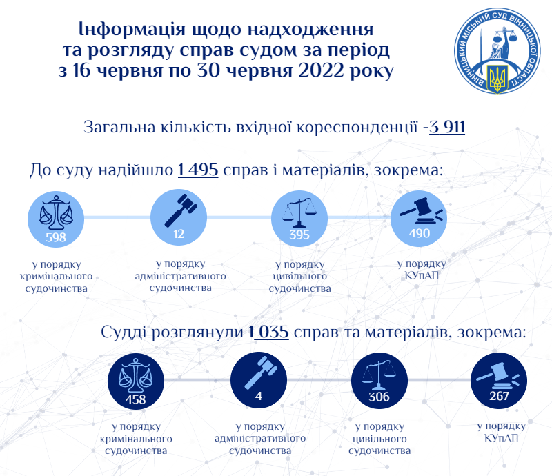 Статистична інформація суду за період з 16 червня по 30 червня 2022 року