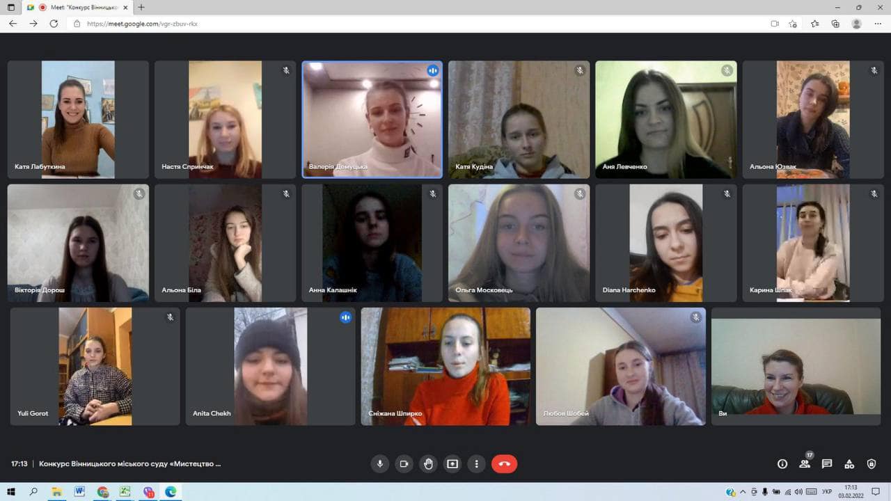 В рамках підготовки до останнього етапу студентського конкурсу «Школа правосуддя. Мистецтво судової промови» 3 лютого, відбулась інформаційна онлайн-зустріч з учасниками конкурсу, за підтримки завідувачки кафедри фундаментальних і приватно-правових дисциплін Вінницького державного педагогічного університету ім.М. Коцюбинського – Тетяни Кронівець.