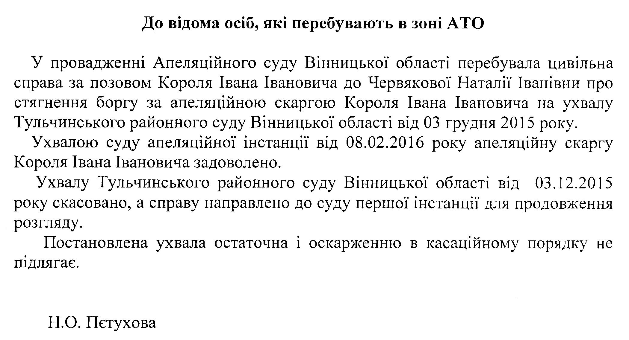 До відома осіб, які перебувають в зоні АТО