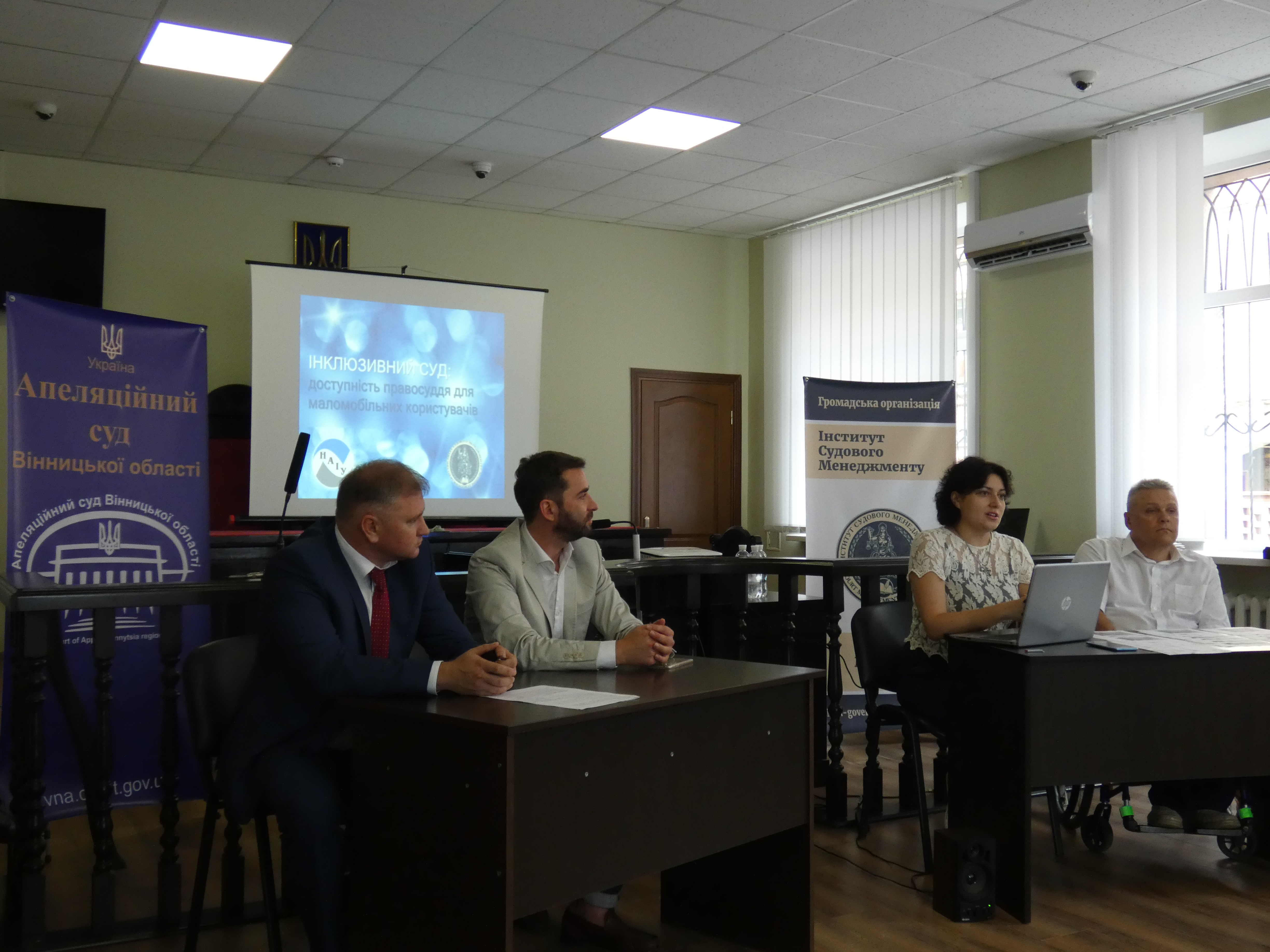 17 серпня в апеляційному суді відбувся тренінг «Інклюзивний суд: доступність правосуддя для маломобільних користувачів». Для працівників судів Вінниччини провели його голова правління громадської організації «Інститут судового менеджменту» Наталія Чумак та представник Національної асамблеї людей з інвалідністю Олег Полозюк.