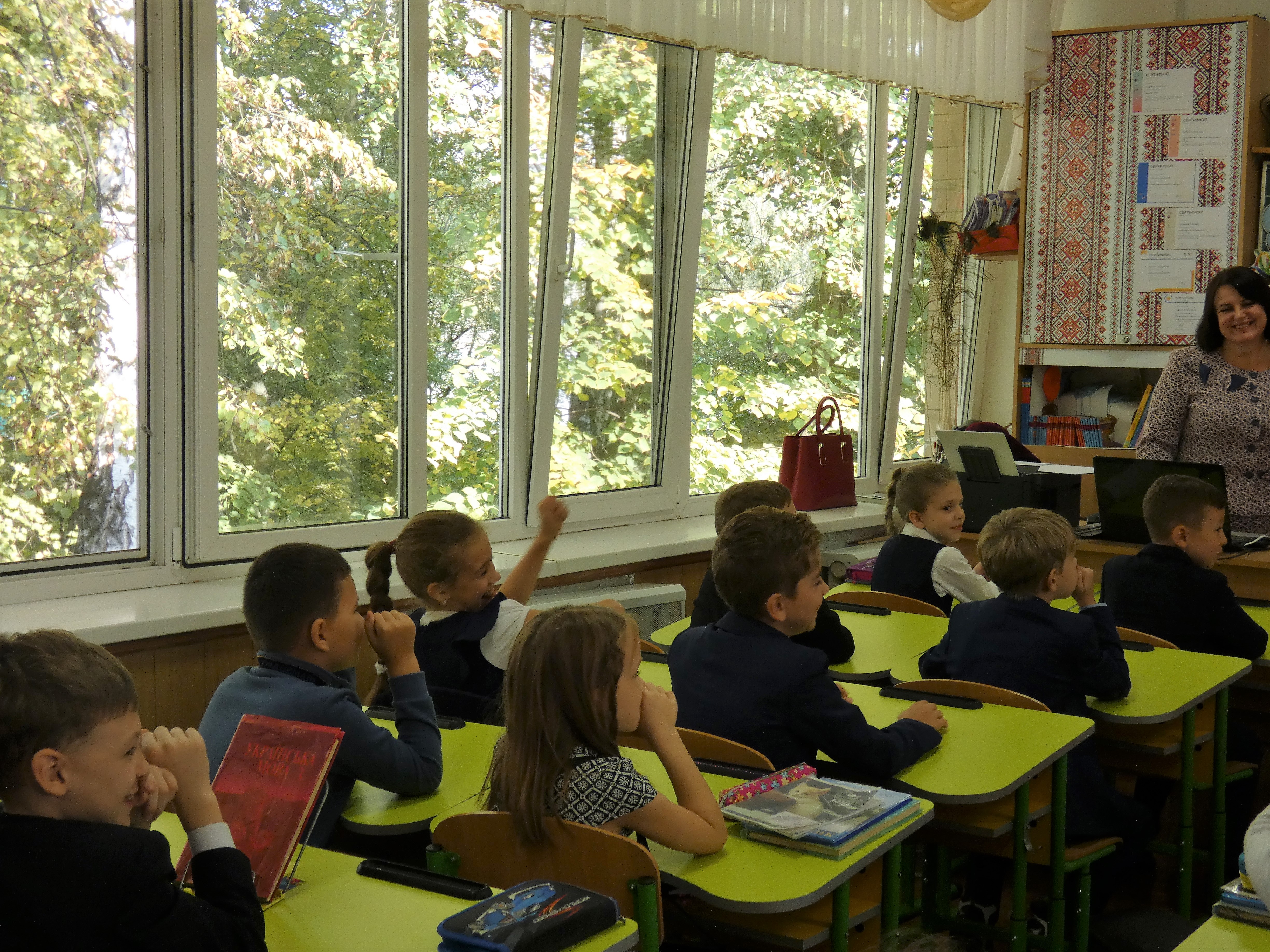 В учнів 3-Б класу вона спочатку запитала, чи сперечаються вони, як вирішують спір та розуміють слово «справедливість». Заняття пройшло у формі інтерактивної гри: після перегляду мультфільму «Кінь проти Хом’яка» діти приміряли на себе роль суддів і вирішували, хто з тварин – правий.