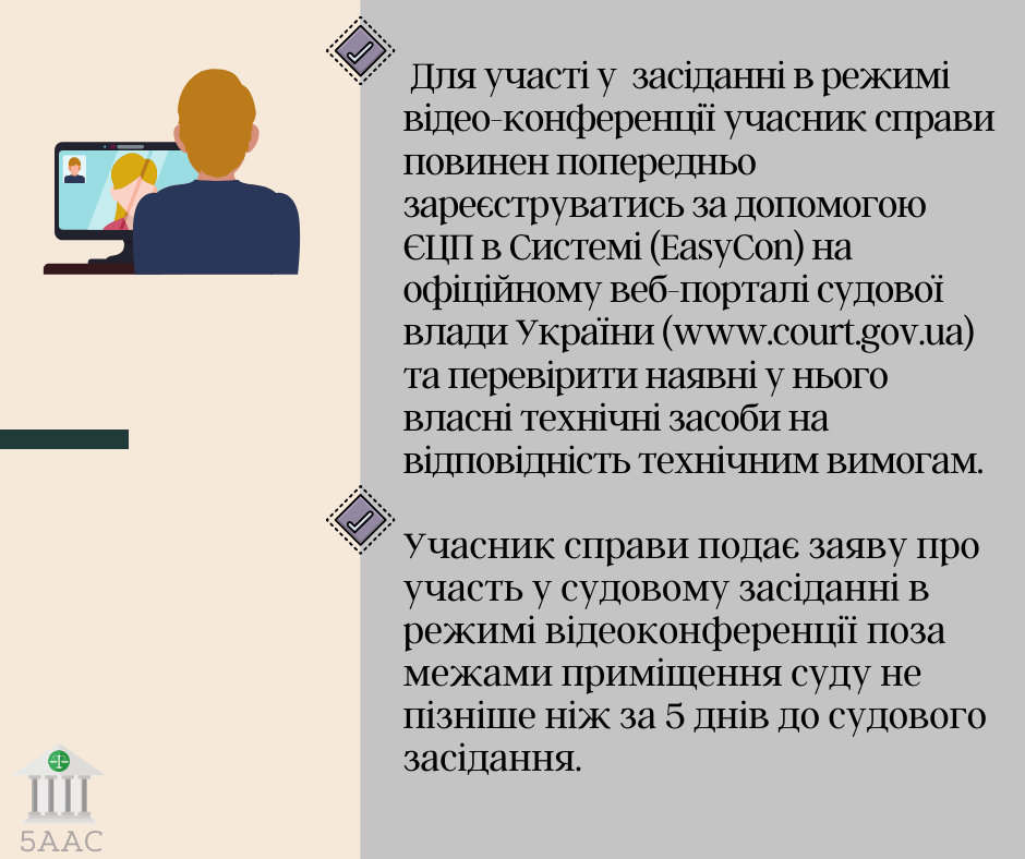 Колеги з Пятого апеляційного адміністративного суду розробили послідовність дій для організації судового засідання в режимі онлайн.