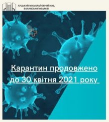 З огляду на продовження в Україні карантину, з метою попередження поширення короновірусу COVID-19, у Луцькому міськрайонному суді Волинської області продовжено особливий режим роботи до 30 квітня 2021 року: