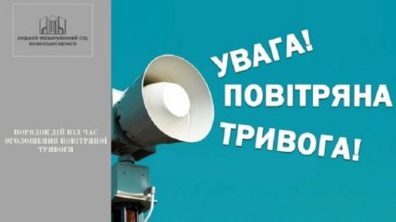 Шановні учасники судового процесу просимо дотримуватися правил безпеки під час сигналу оповіщення «Повітряна тривога»!