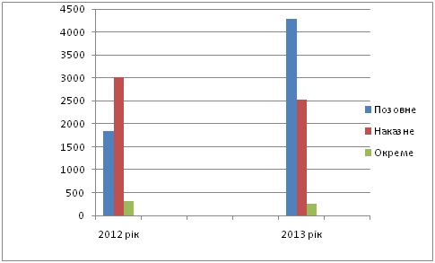 На суд покладаються обов'язки по усуненню причин та умов, що сприяють скоєнню злочину, але разом з тим, при розгляді справи можуть стати відомими відомості про наявність таких умов і причин, а також фактів порушення закону посадовими особами та іншими особами. Це дає підставу суду для винесення ухвали (постанови), в якій звертається увага державних органів, суспільних організацій або посадових осіб на встановлення по справі фактів порушення закону, причини та умови, що сприяли скоєнню злочину та потребують прийняття відповідних заходів. Згідно з КПК України суд при наявності на те підстав виносить окрему ухвалу (постанову). Разом з тим, підставою для винесення даних ухвал (постанов) також є виявлені судом порушення прав громадян та інших порушень закону, допущених при проведенні дізнання, досудового слідства або при розгляді справи вищестоящим судом. Суд за матеріалами судового розгляду та вказаних вище випадків вправі винести окрему ухвалу (постанову), якщо визнає це за необхідне. Кількість винесених окремих ухвал (постанов) у 2013 році в порівнянні з 2012 роком, можна спостерігати у таблиці №3.