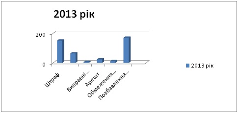 За вироками, що набрали і не набрали законної сили у 2013 році, було засуджено 766 осіб до різних видів покарання