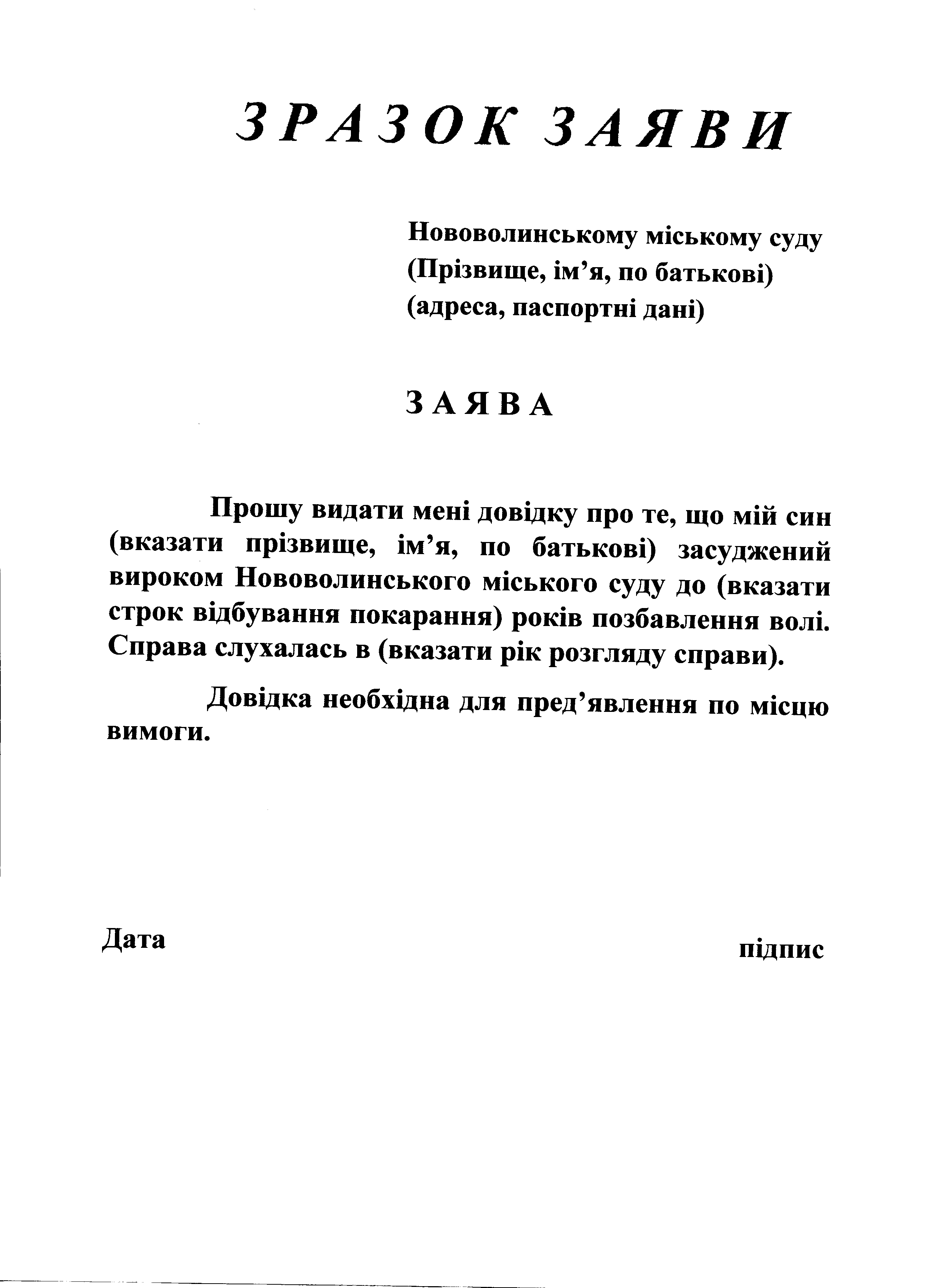 Зразки заяв