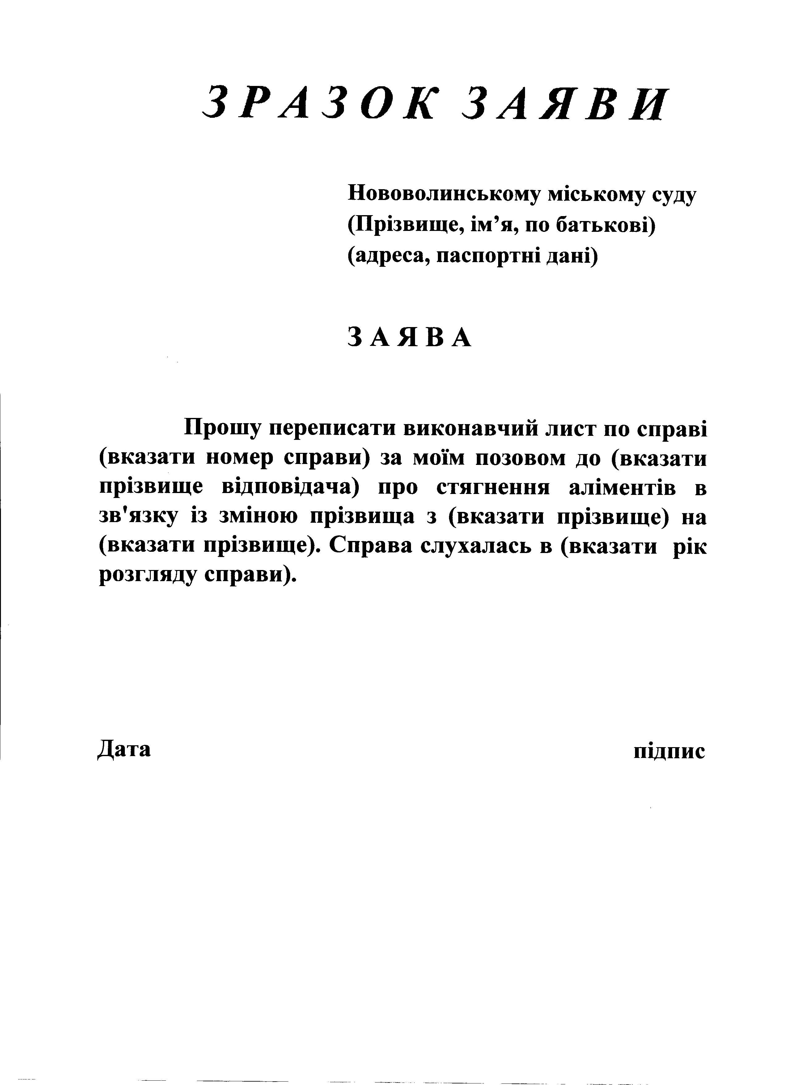 Заява переписання виконавчого листа