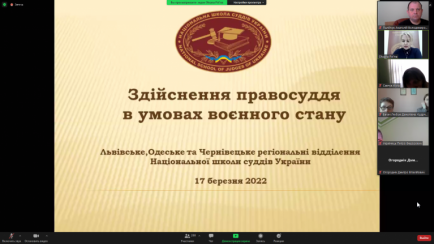 Упродовж онлайн–семінару обговорили правила організації належної роботи суду в умовах особливого правового режиму, що вводиться у разі загрози національній безпеці; командну роботу судді, помічника судді та секретаря судових засідань в умовах воєнного стану; особливості роботи інформаційно-телекомунікаційних ресурсів судової системи за таких умов.