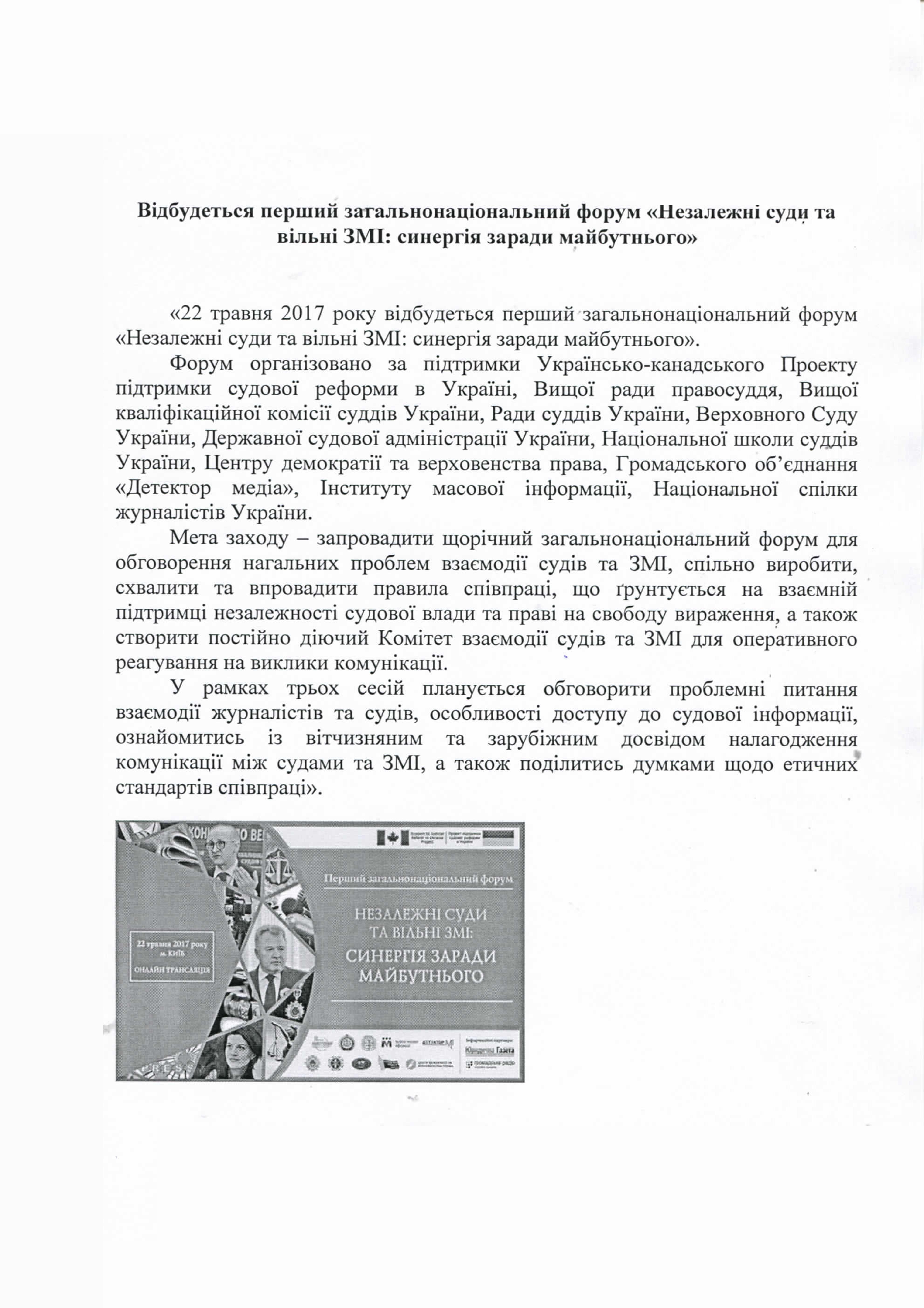 Перший загальнонаціональний форум «Незалежні суди та вільні ЗМІ: синергія заради майбутнього