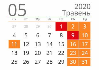 Відповідно до ч. 3 ст. 67 Кодексу законів про працю України, якщо святковий день збігається з вихідним днем, вихідний день переноситься на наступний після святкового. Через те, що 09 травня 2020 року – субота, понеділок 11 травня 2020 року – вихідний.