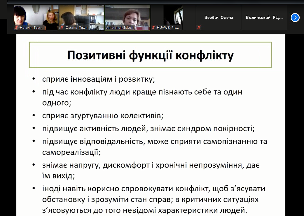 З 01 липня 2020 року по 08 липня 2020 року «Волинським обласним центром перепідготовки та підвищення кваліфікації працівників органів державної влади, органів місцевого самоврядування, державних підприємств, установ і організацій» було проведено онлайн навчання через платформу Zoom за короткостроковою програмою «Формування і розвиток особистісних компетентностей державних службовців».