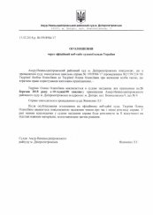Після опублікування оголошення на офіційному веб-сайті суду, Тауріна Олена Олексіївна вважається повідомленою належним чином про час і місце розгляду справи. У разі неявки відповідачки у судове засідання справа буде розглянута за її відсутності на підставі наявних матеріалів, та постановлене заочне рішення.