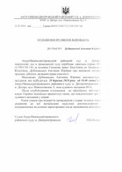 Відповідач Дубіжанська Антоніна Юріївна викликається у судове засідання, яке відбудеться 28 березня 2018 року об 10.40 годині в приміщенні Амур-Нижньодніпровського районного суду м. Дніпропетровська за адресою: м. Дніпро, вул. Новоселівська, 9, зала судового засідання №18.