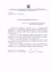 Виклик відповідача Савченко О.С. по цивільній справі № 199/10246/19 за позовом Савченка С.І.(суддя Подорець О.Б.)