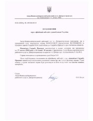 Виклик відповідача Саурабх П.по цивільній справі №199/10130/20 за позовом Саурабх Ю.А.(суддя Богун О.О.)