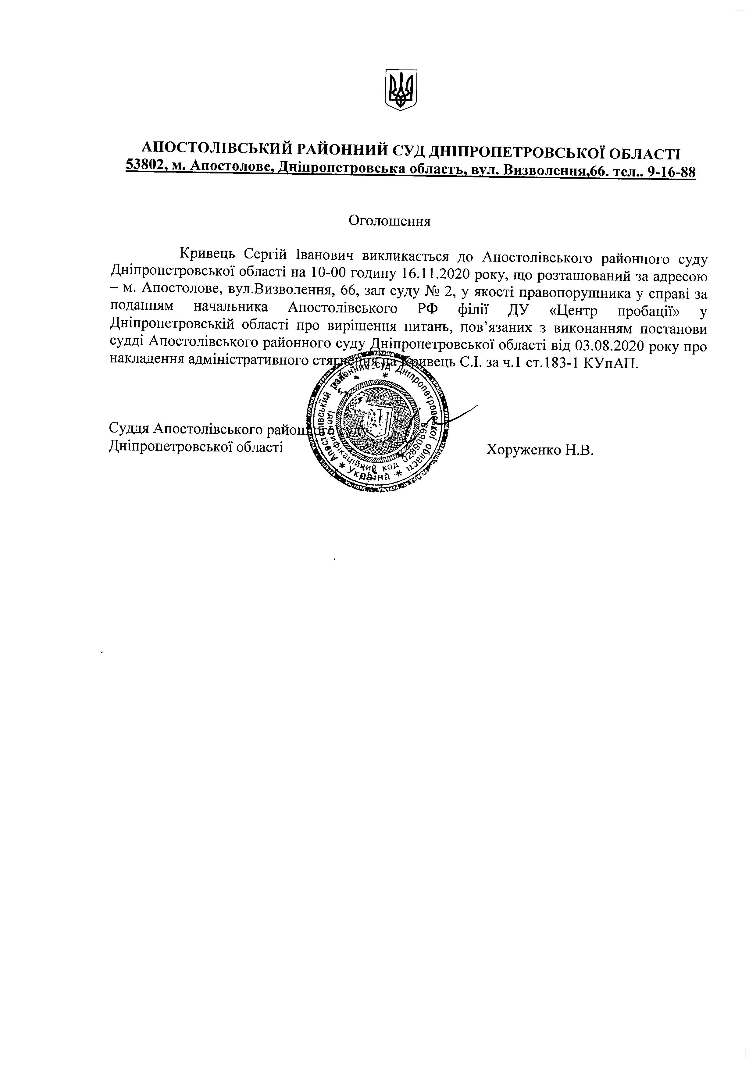 Апостолівський районний суд Дніпропетровської області