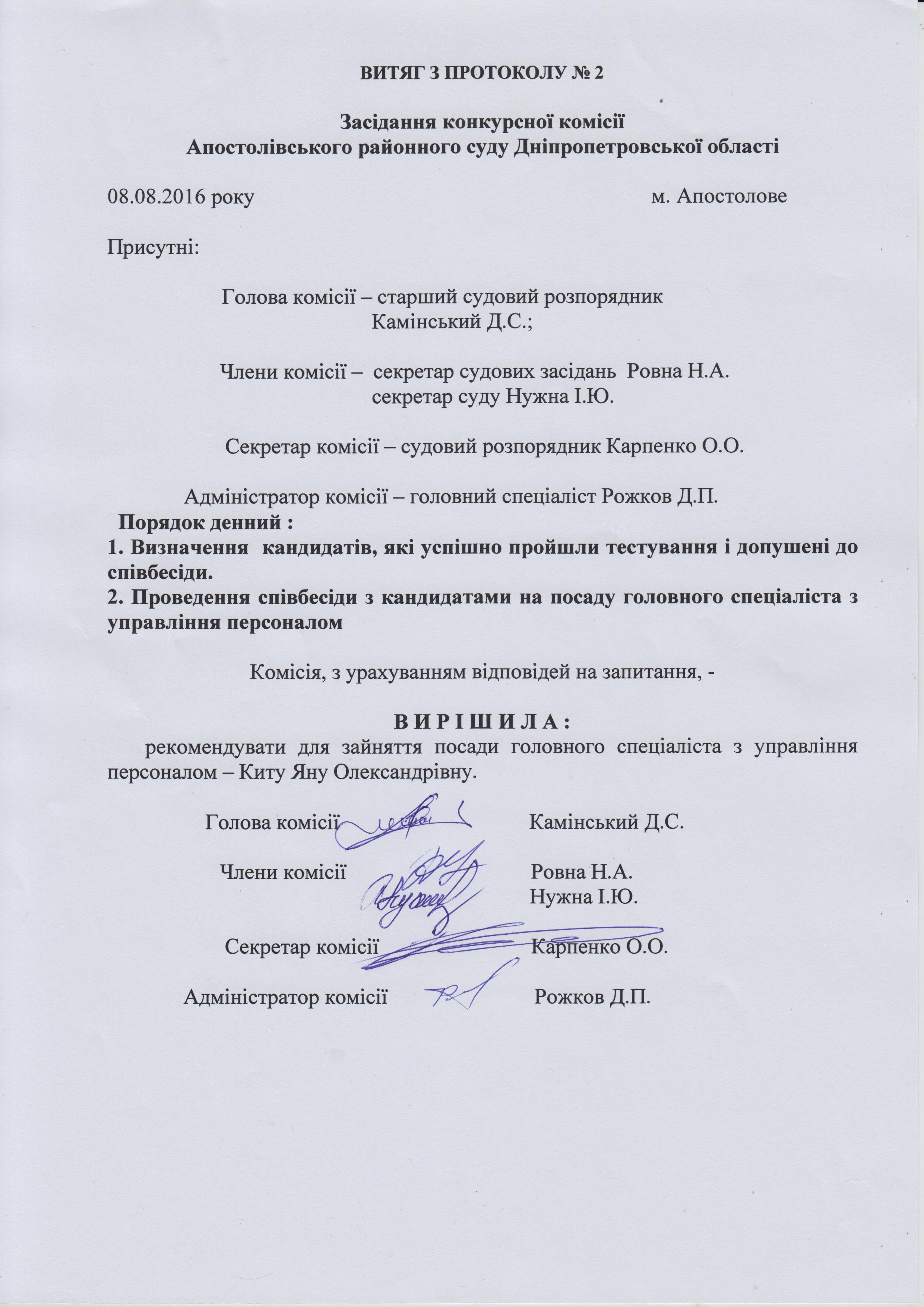 Витяг з протоколу № 2 Засідання конкурсної комісії Апостолівського суду