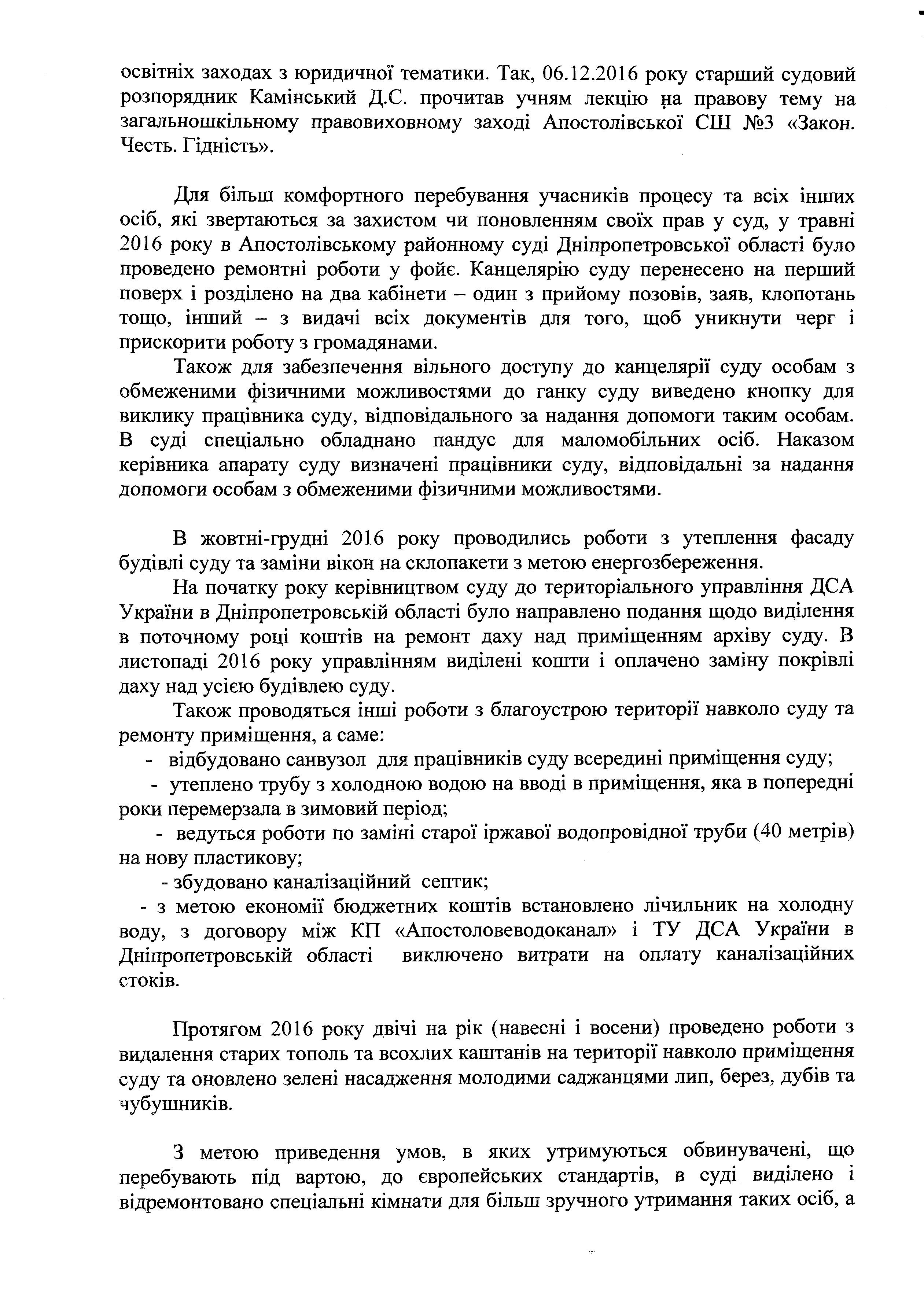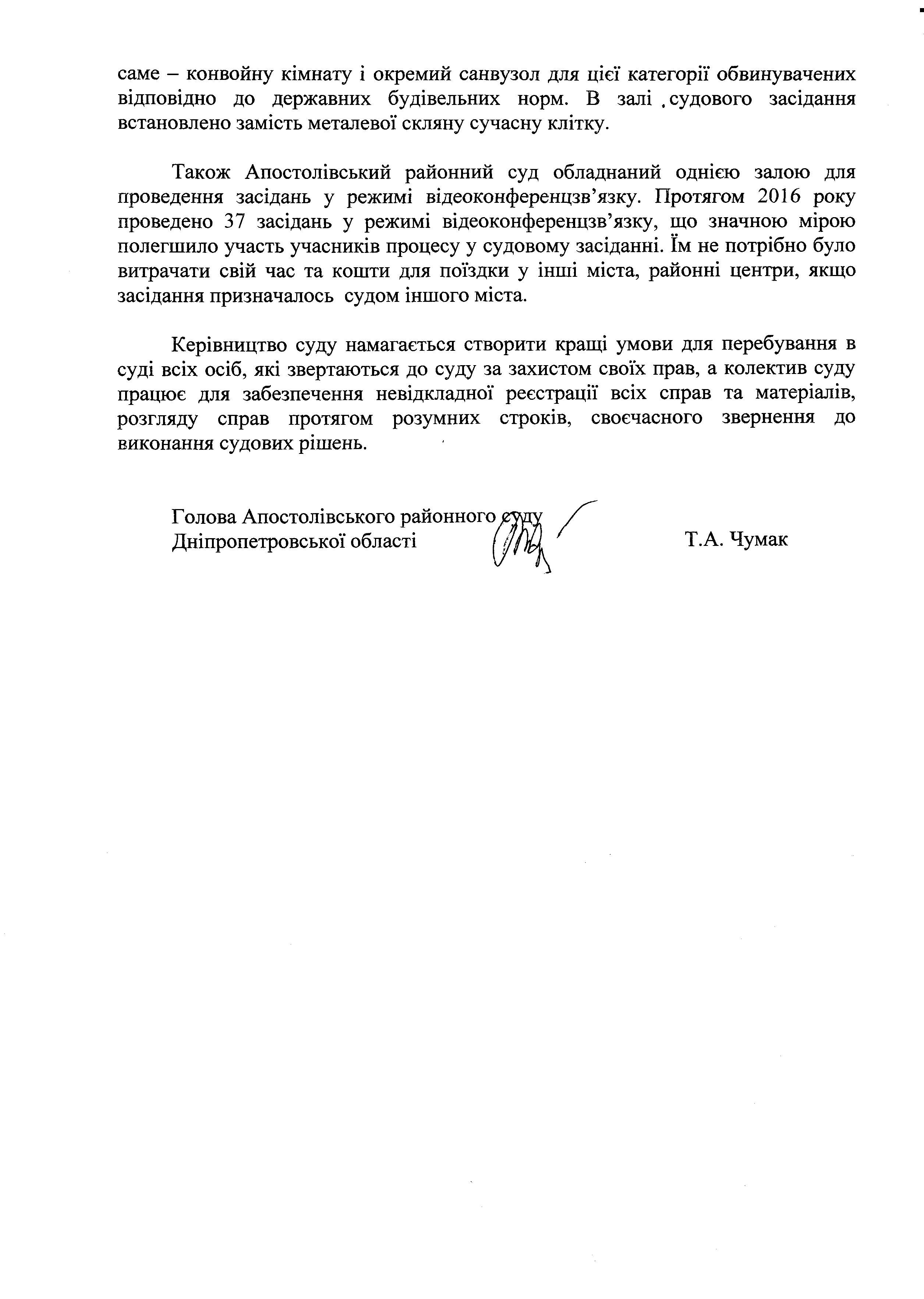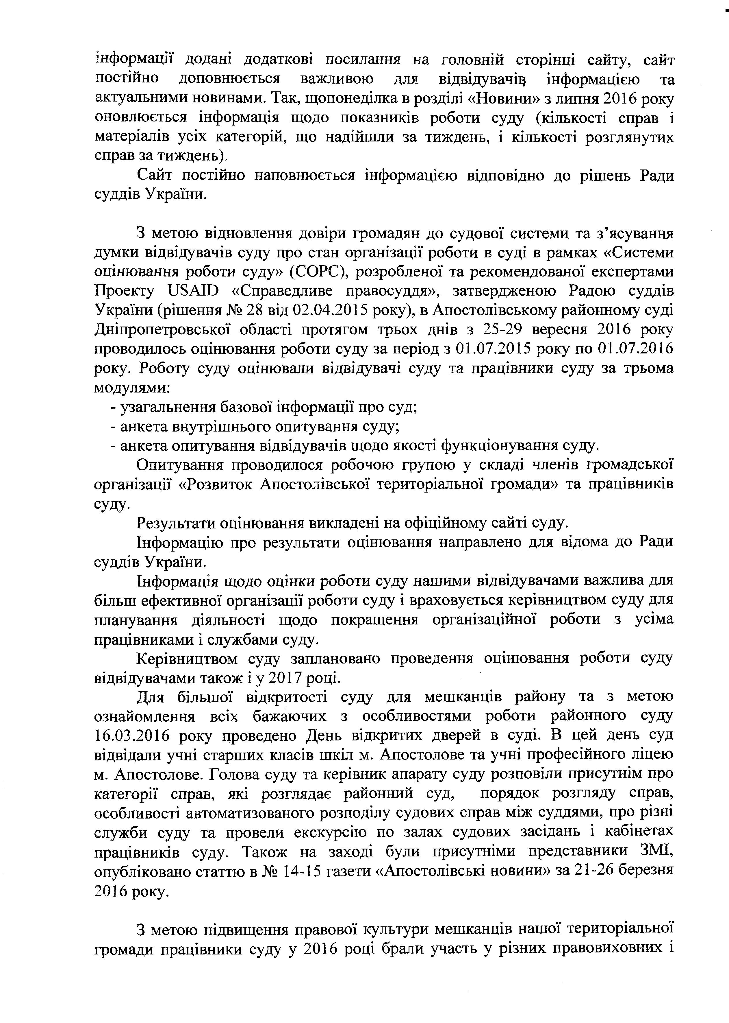 Інформація щодо організації роботи Апостолівського районного суду у 2016 році