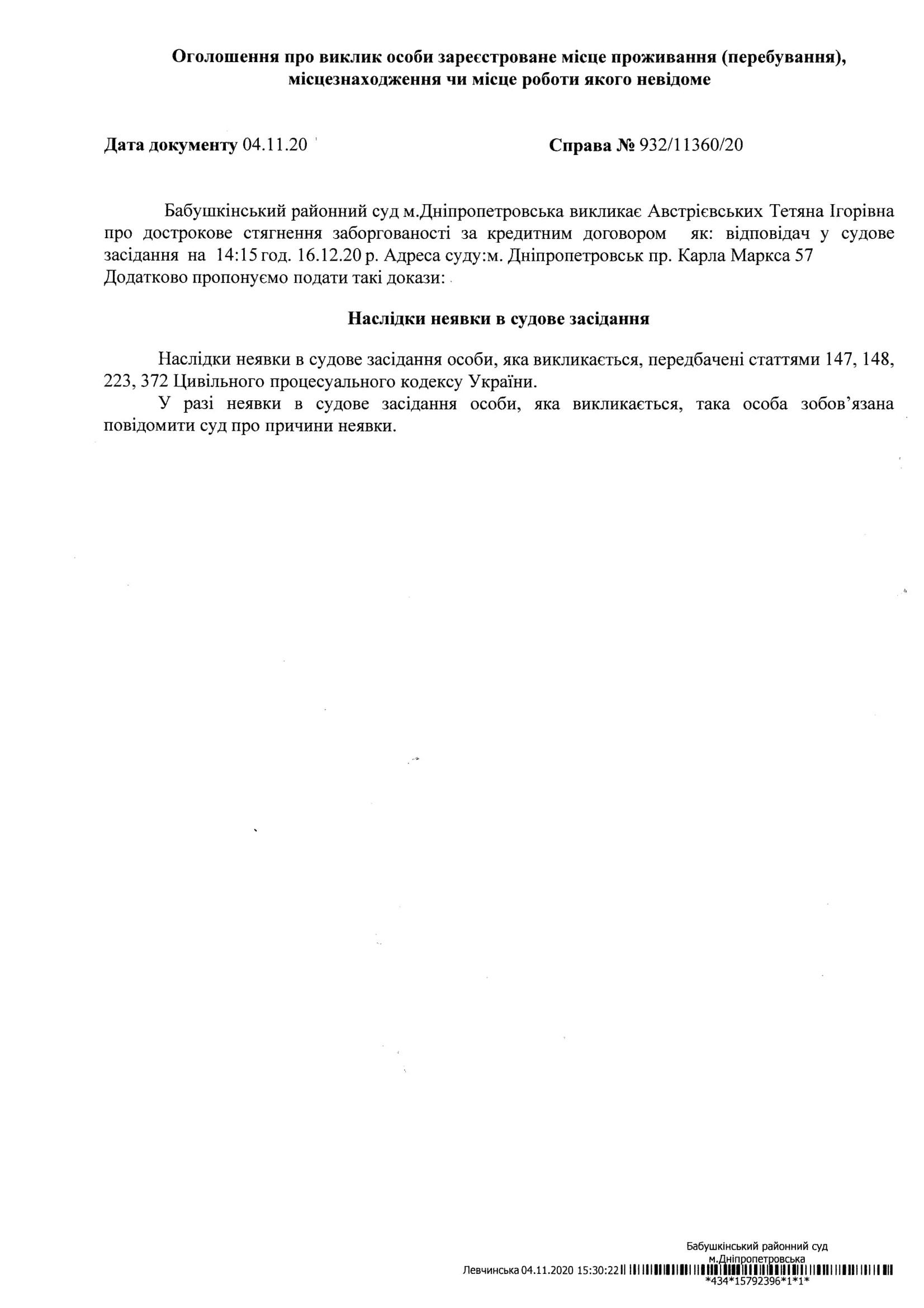Оголошення про судові засідання