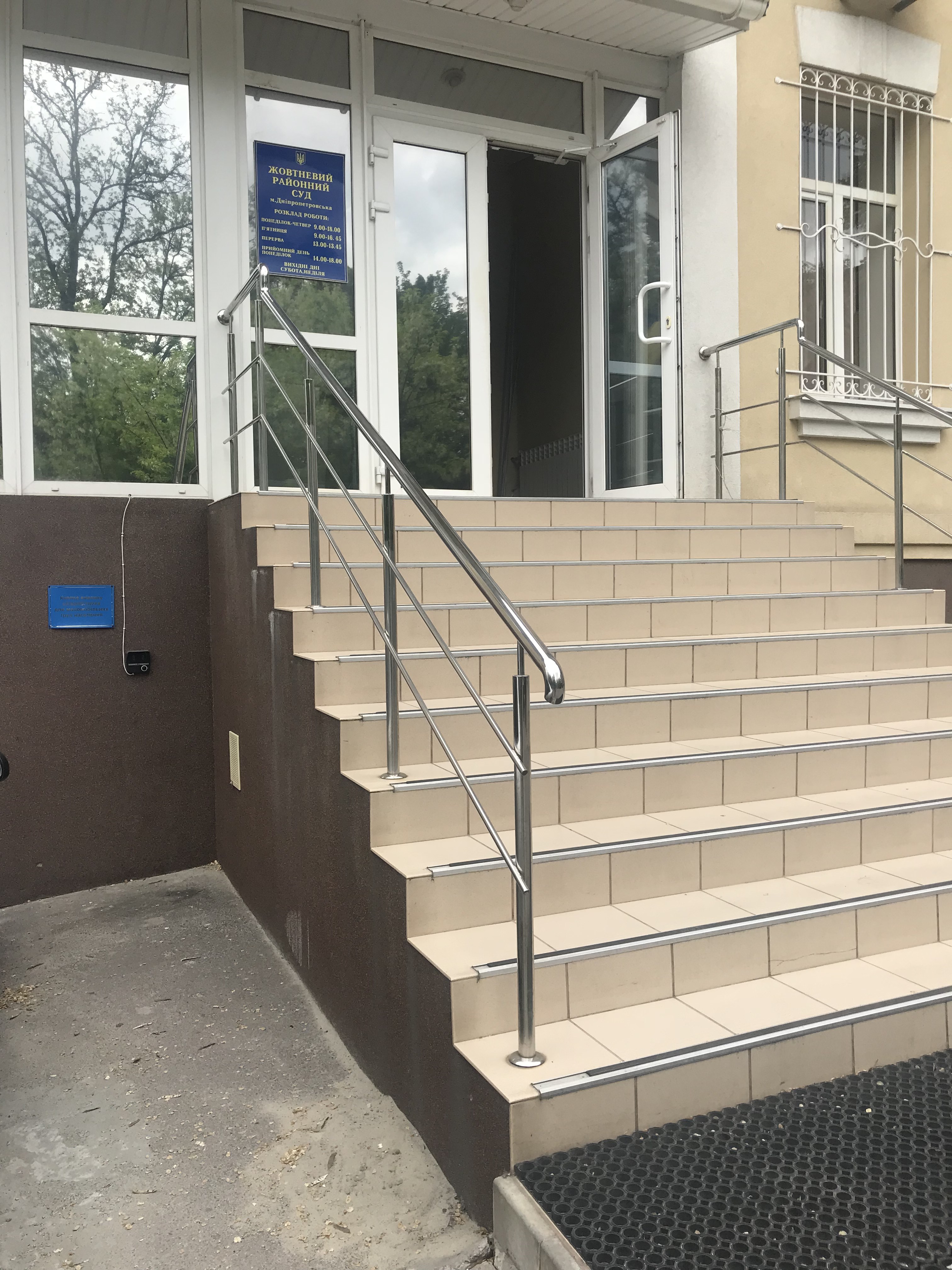 Для забезпечення прав осіб з інвалідністю та маломобільних груп населення, на фасаді будівлі, ліворуч від центрального входу Жовтневого районного суду м. Дніпропетровська, встановлено кнопку виклику співробітника суду. (фото 1,2)