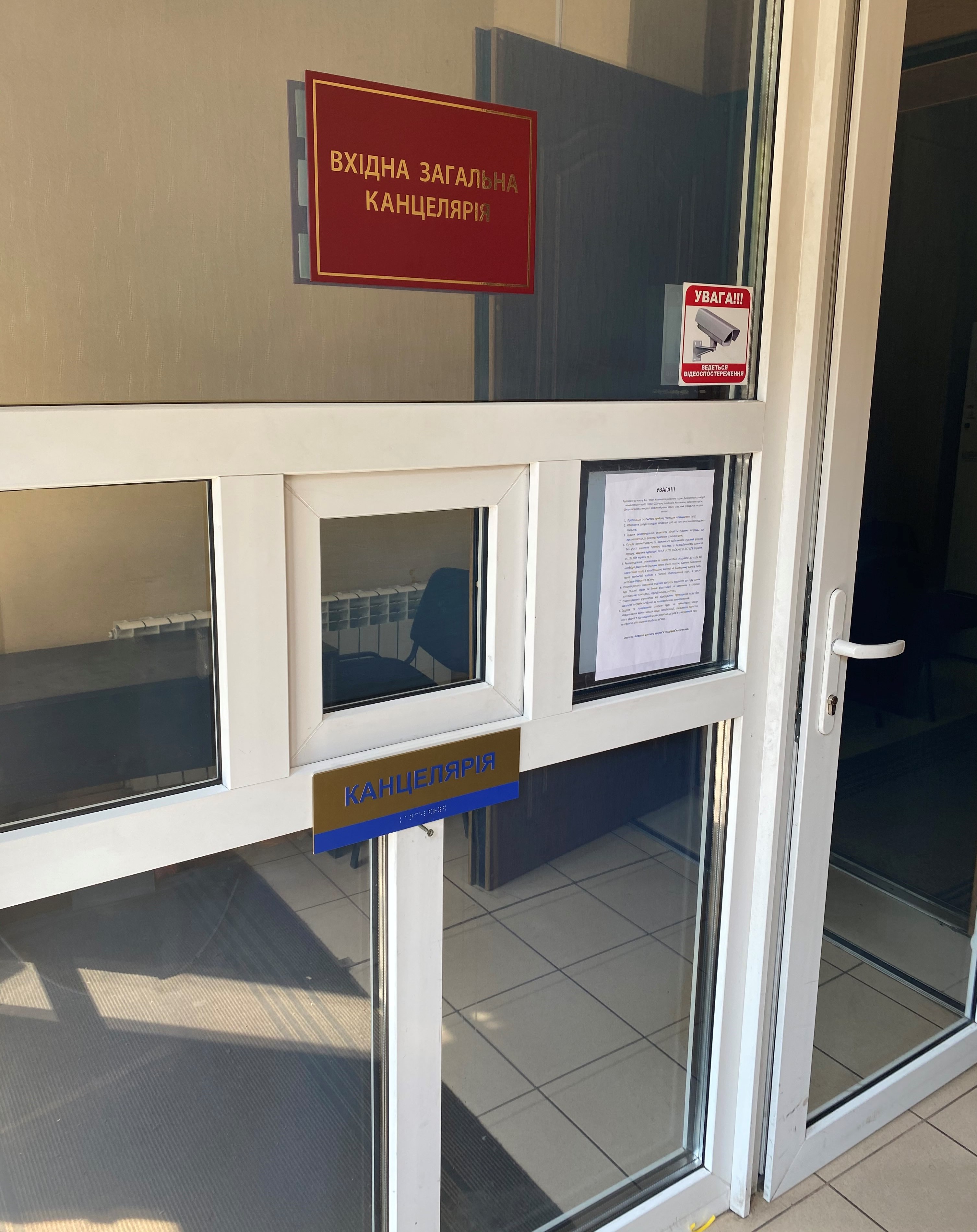 У разі якщо особа звертається до суду з метою подати документи для звернення до суду або отримати інформацію та необхідні документи в канцелярії суду, працівник канцелярії повідомляє про це відповідальних працівників.