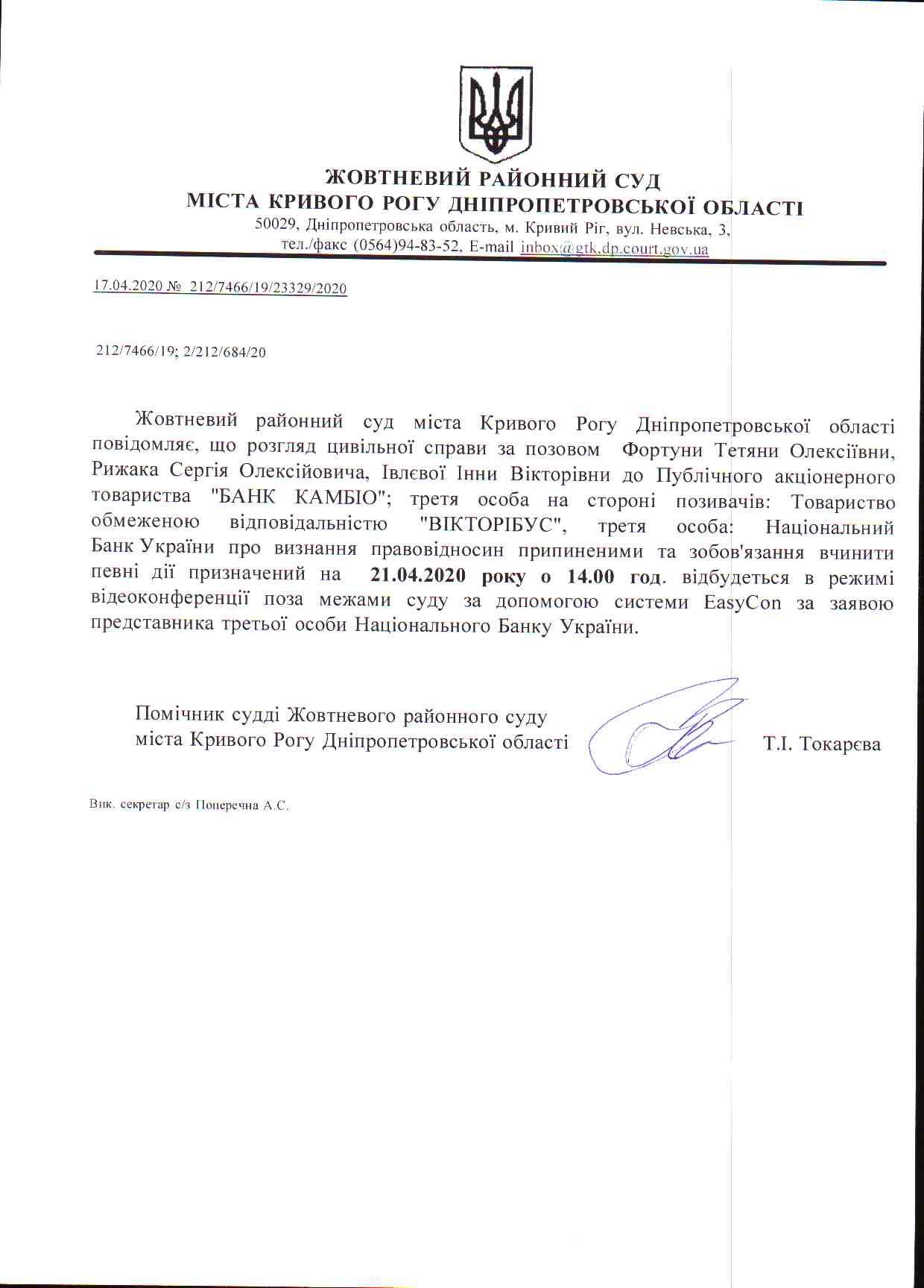 Оголошення про проведення судових засідань у режимі відеоконференції поза межами суду