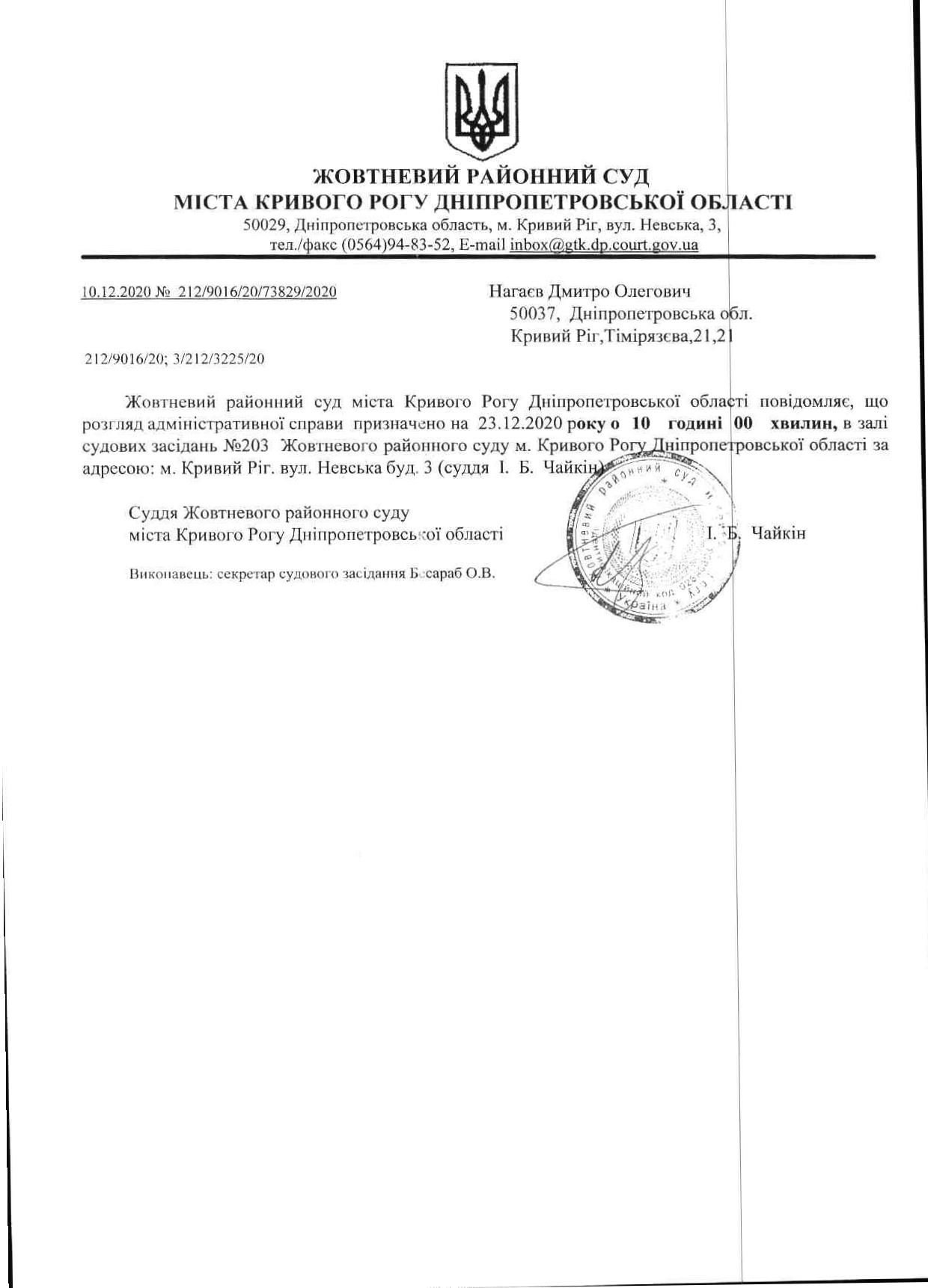 Жовтневий районний суд м. Кривого Рогу