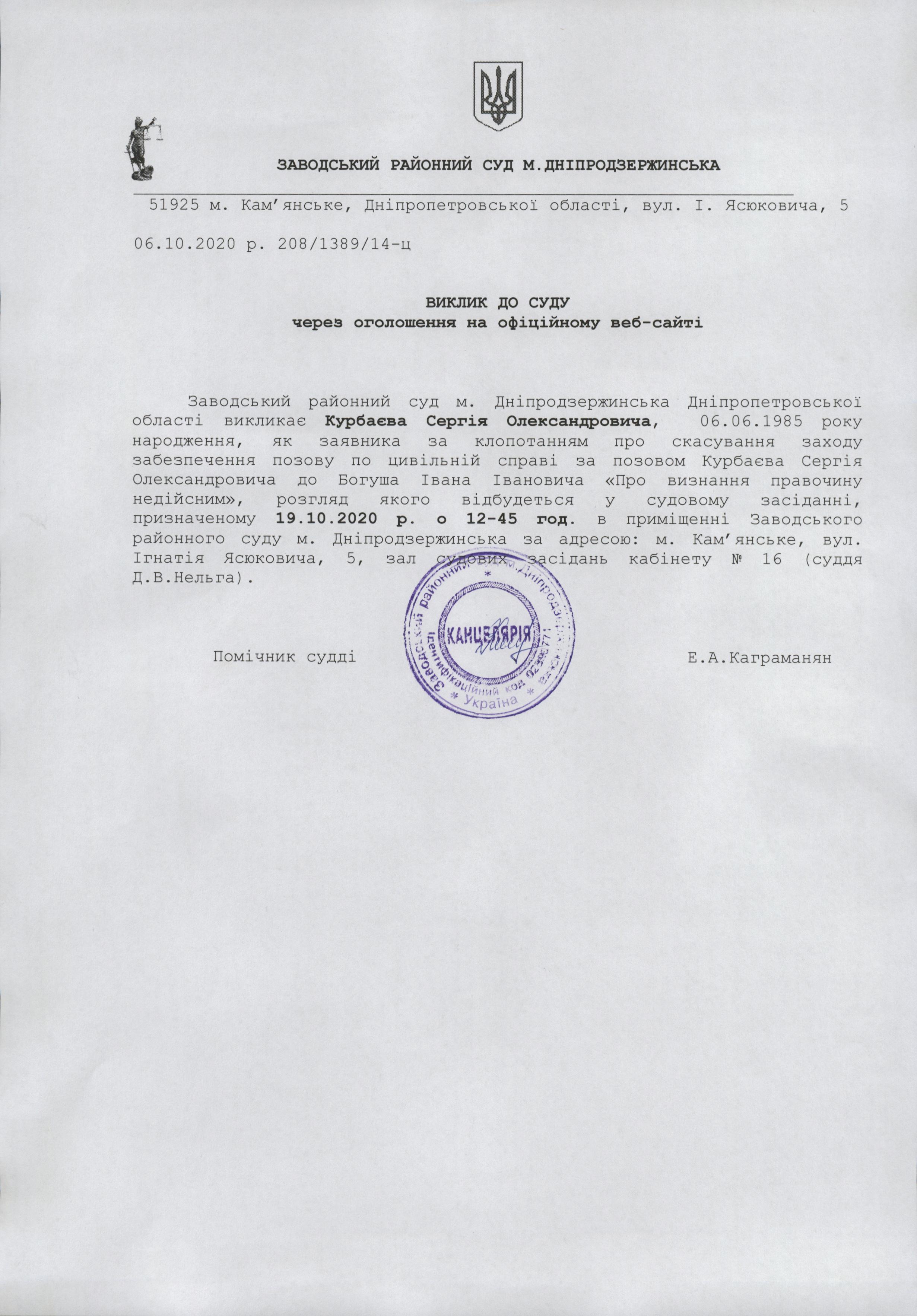 Повідомляється Курбаєв Сергій Олександровича, 06.06.1985 р.н на 19.10.2020 року о 12:45