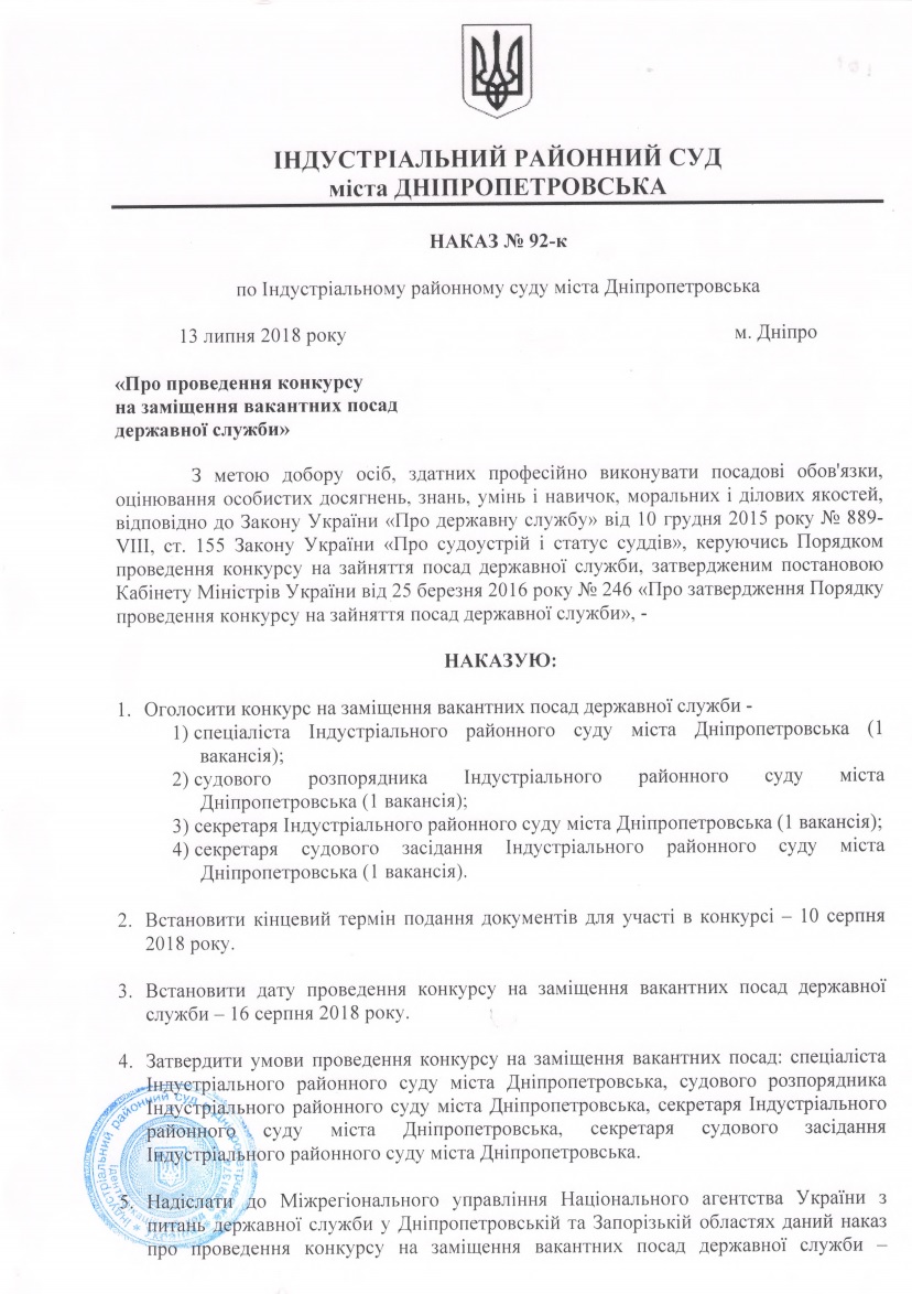Наказ № 92-к проведення конкурсу на заміщення вакантних посад.