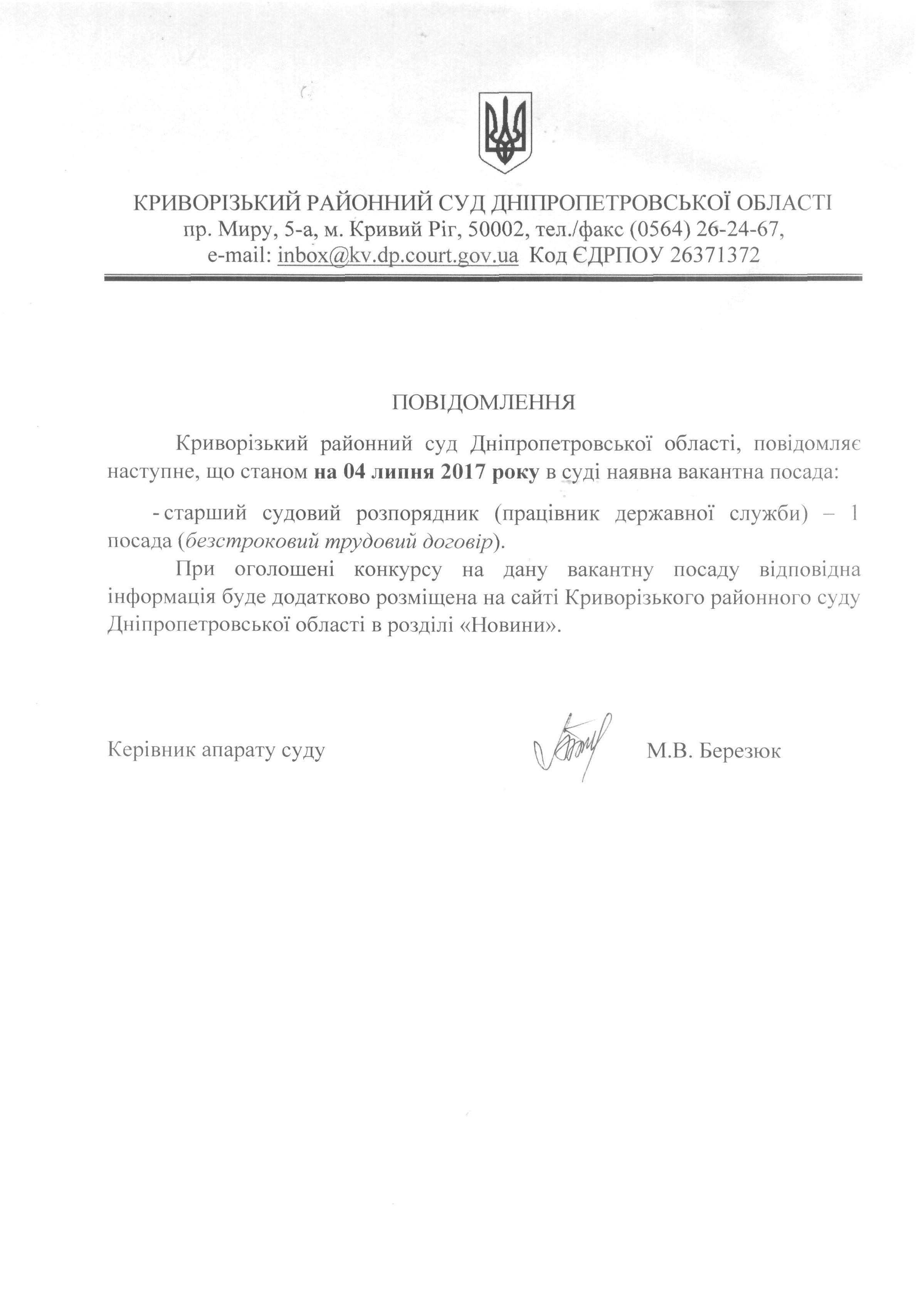 Повідомлення про вакантну посаду станом на 04.07.2017 року