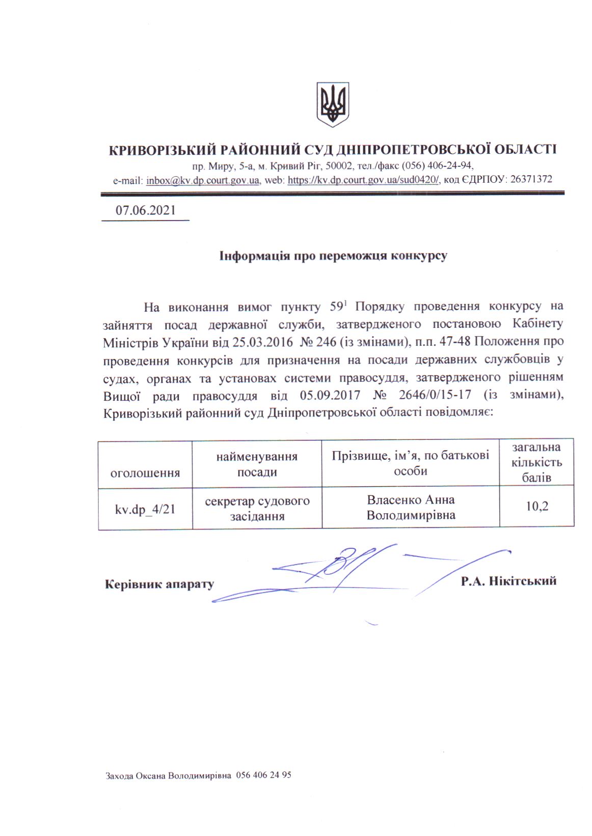 Інформація про переможця конкурсу