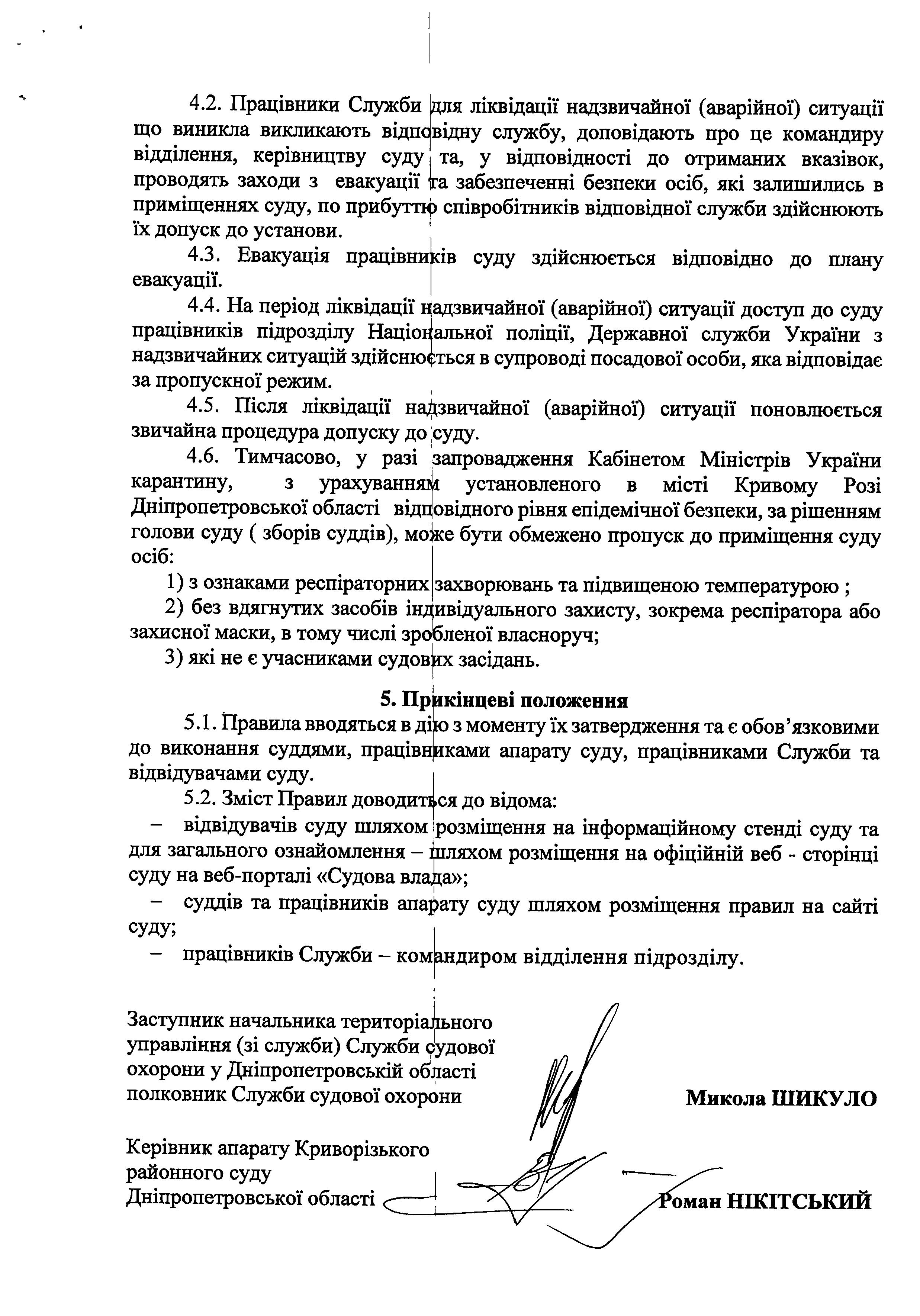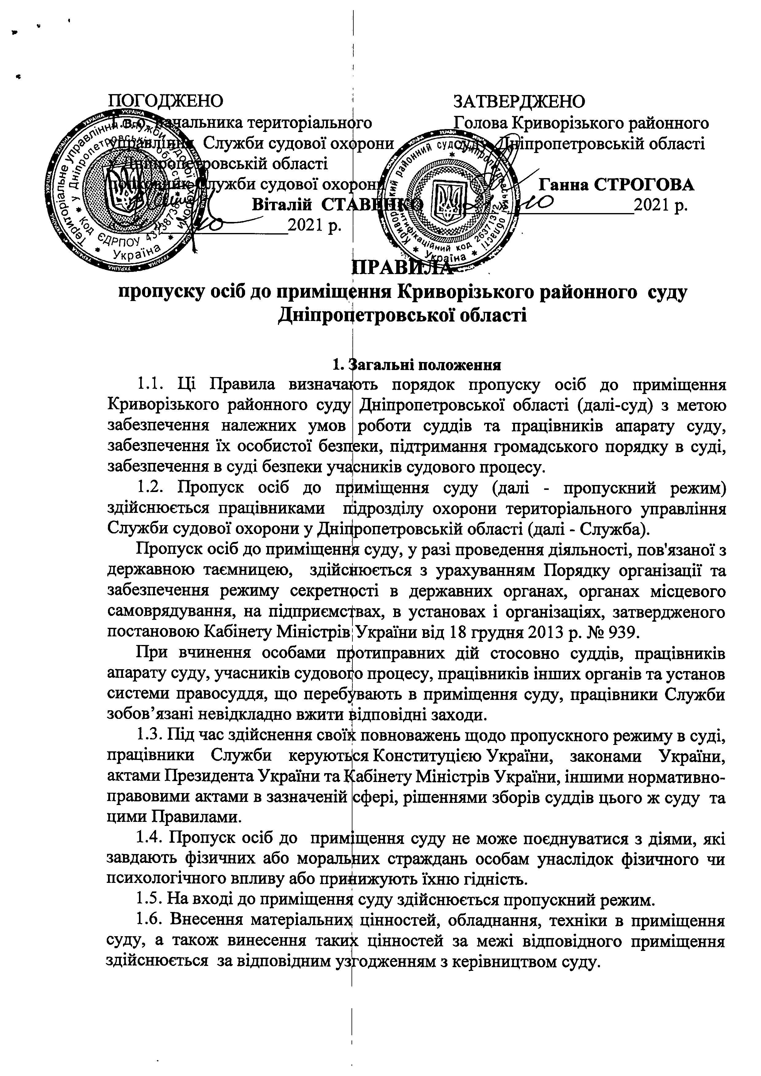 ПРАВИЛА пропуску осіб до приміщення Криворізького районного суду Дніпропетровської області