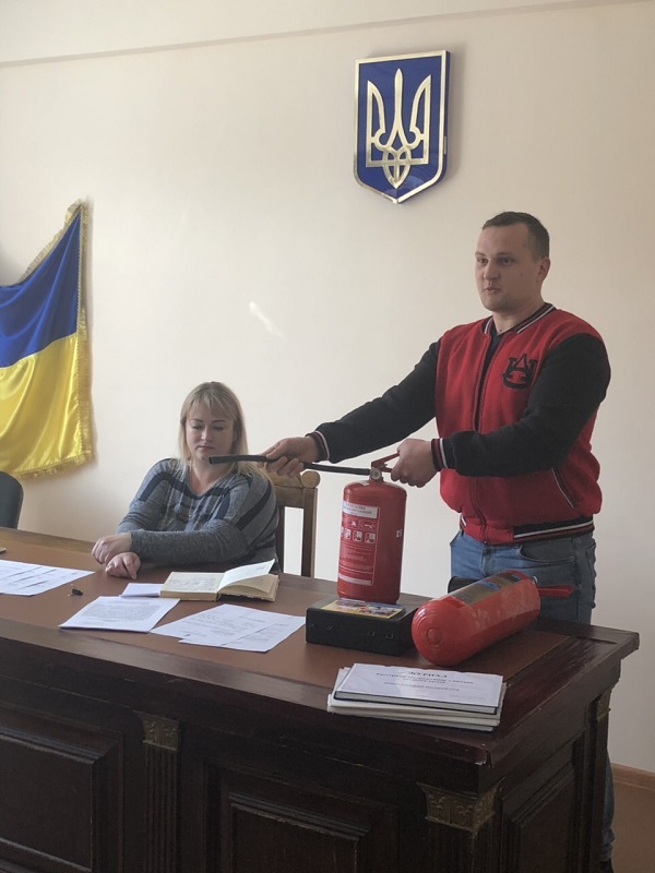 На цьому занятті присутнім були роз’яснені основні правила дотримання пожежної безпеки під час перебування на робочих місцях та повідомлено про наявні системи протипожежного захисту.