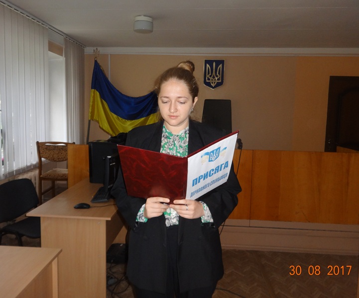 Сьогодні, 30 серпня 2017 року, у Тернівському районному суді м. Кривого Рогу новопризначений державний службовець урочисто склала Присягу державного службовця.