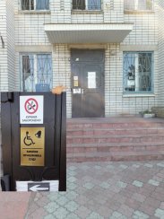 Вхід до приміщення Юр’ївського районного суду Дніпропетровської області обладнаний з урахуванням державних будівельних норм стаціонарним пандусом і кнопкою виклику.