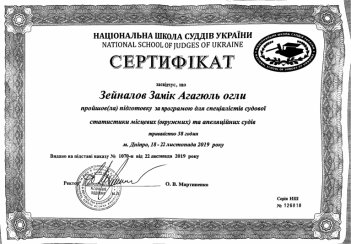 З 18 по 22 листопада 2019 року помічник голови Юр’ївського районного суду Дніпропетровської області Зейналов З.А.о. пройшов підготовку за програмою для спеціалістів судової статистики місцевих (окружних) та апеляційних судів, підвищивши тим самим свою кваліфікацію. Навчання проводилось Дніпровським відділенням Національної школи суддів України, викладачами надано нову та корисну інформацію.